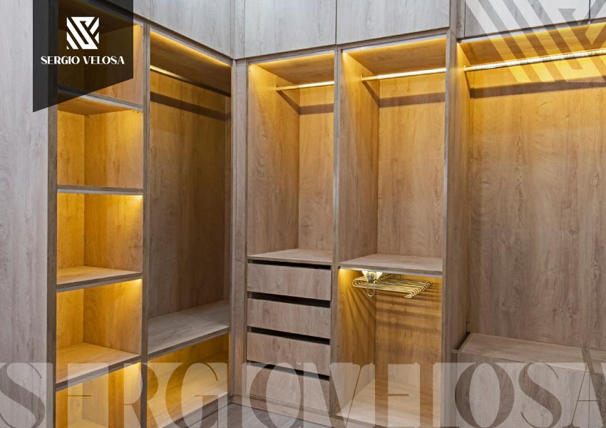 En Sergio Velosa no fabricamos closets — diseñamos sistemas de almacenamiento completos que se adaptan a su ropa, sus hábitos, su espacio y su estilo de vida. Cada closet parte de un análisis: ¿cuánta ropa cuelga? ¿cuánta se dobla? ¿cuántos zapatos? ¿necesita joyero? ¿comparte el closet con su pareja?